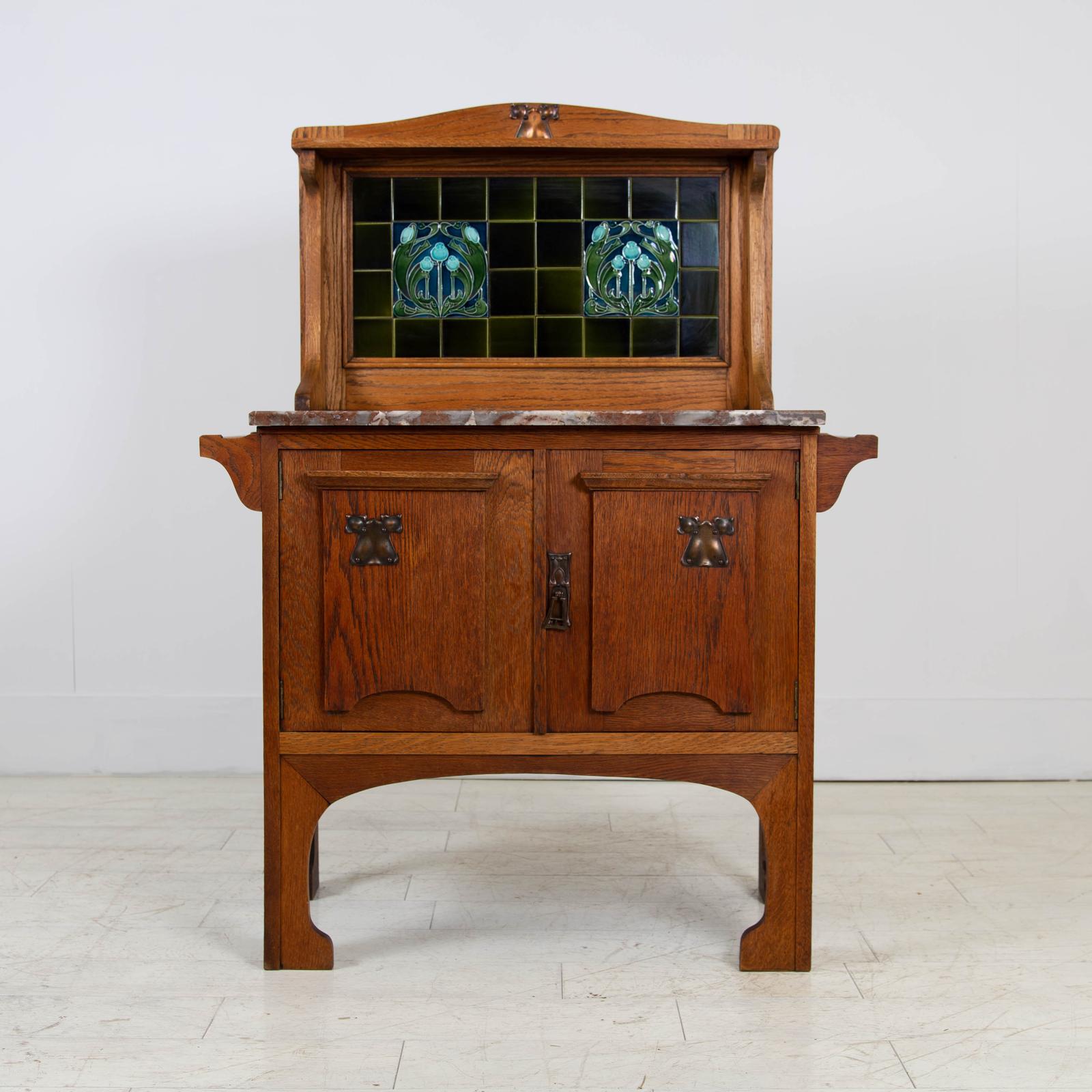 Marble Topped Oak Washstand Cabinet by Liberty of London c.1910