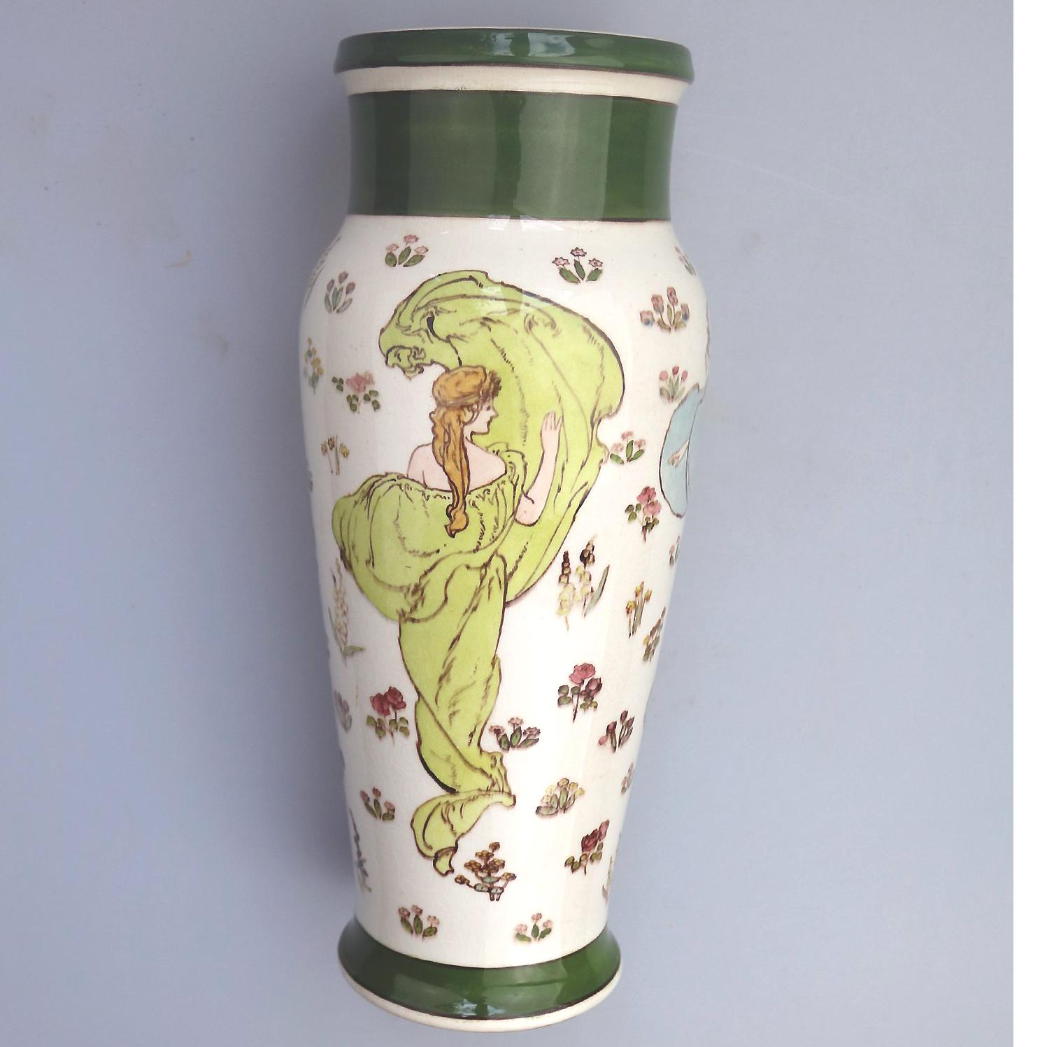 Margaret E Thomson : Royal Doulton Lambeth Faience Vase Mucha Style C.1900