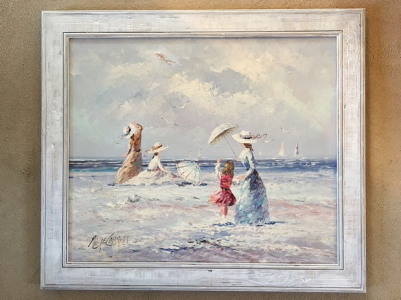 Marie Charlot - Edwardian Beach Scene - Oil on Canvas (1 of 1)