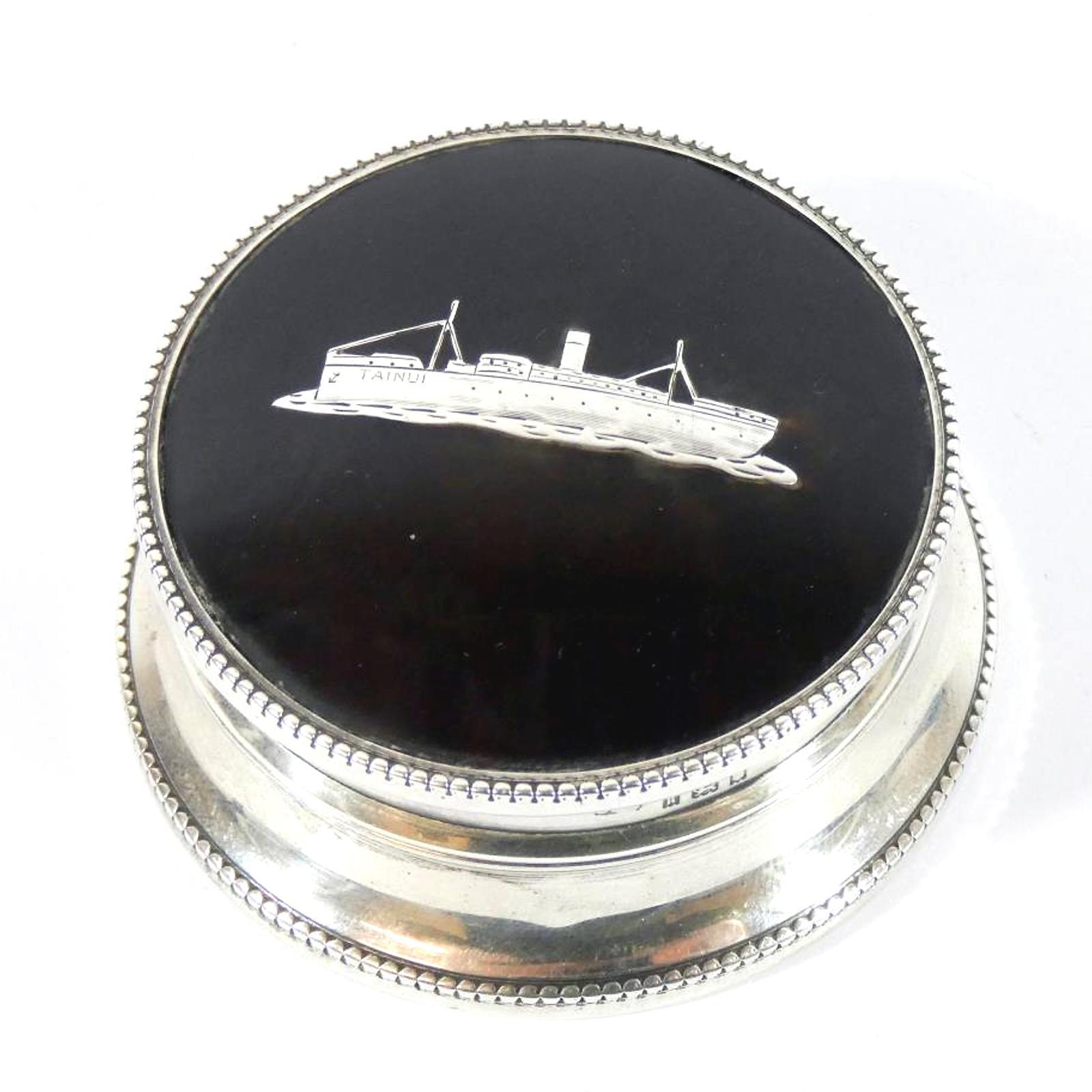 Marine Interest - Rare Solid Silver Pique Trinket Box with Liner Ship - 1925