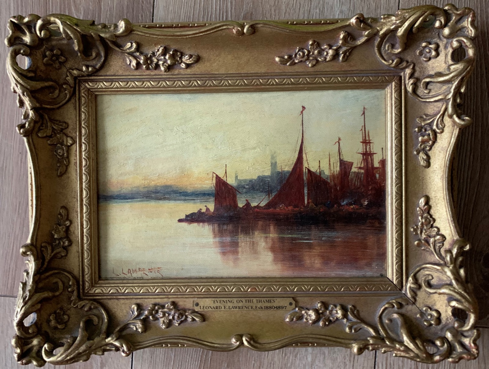 Marine Oil Painting Titled 'Evening On the Thames' by Leonard.E. Lawrence