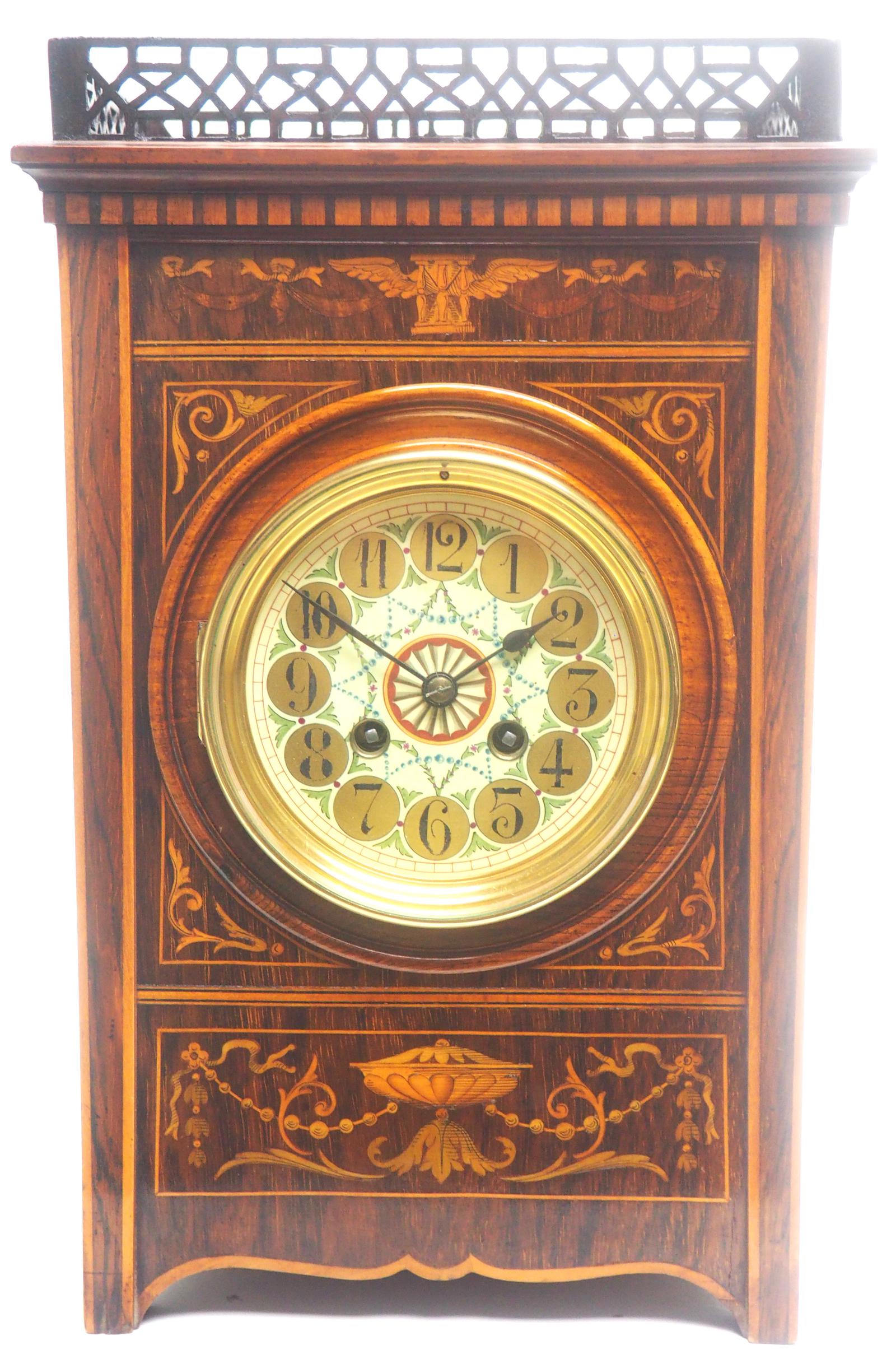 Marvellous French 8-day Inlaid Mantle Clock – Large Model Incredible Decoration – Painted Enamel Dial