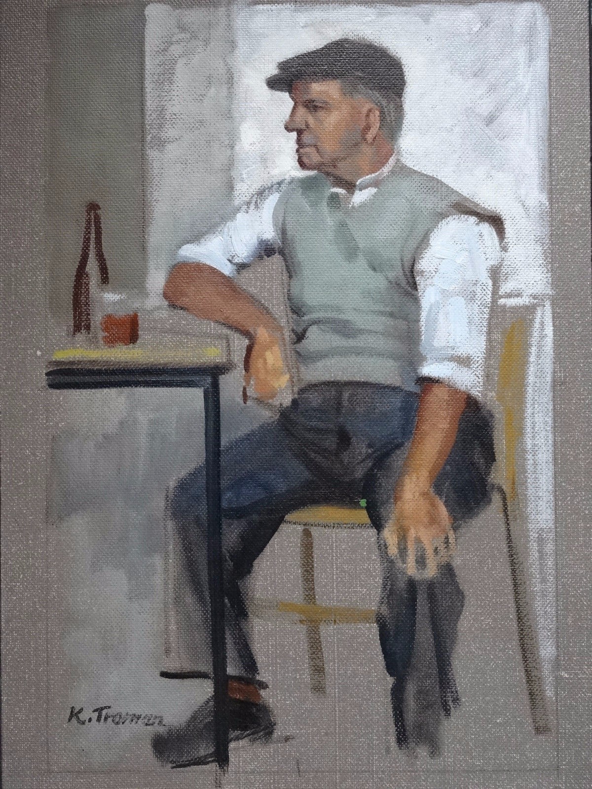 Marvelous 1950s Oil Portrait Painting of a Man Drinking Ken Troman