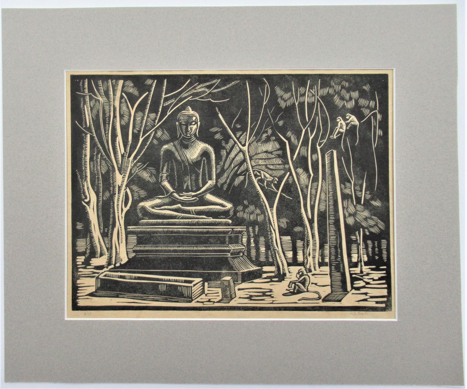 Mary Dudley Short (Molly Freeman), linocut print, Seated Buddha, 4/25, c1935