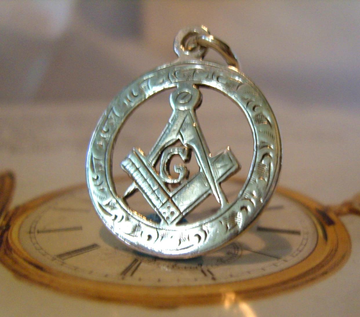 Gentleman's English Sterling silver (fully hallmarked) Antique Masonic fob for a pocket watch chain.