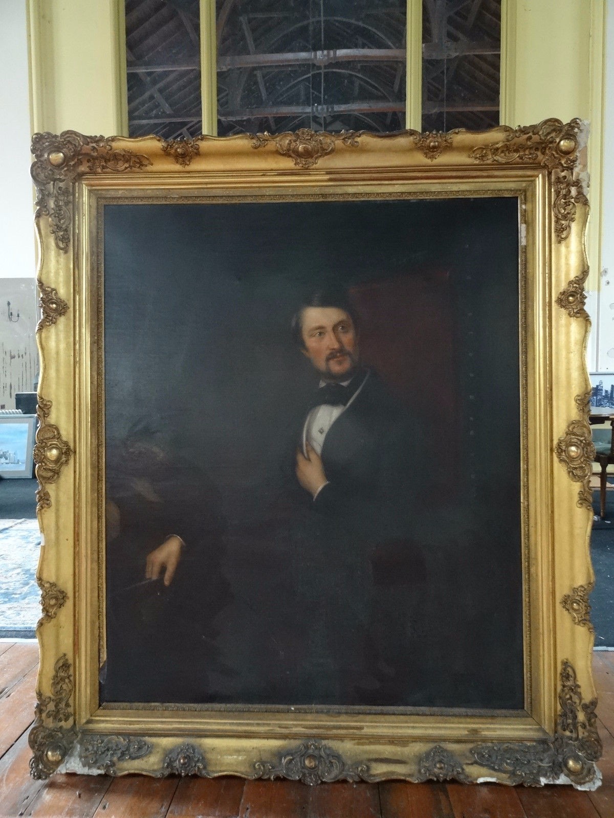 Massive Early 19th Century Oil Portrait Painting (5.6 ft x 4.8 ft) 2 of 2
