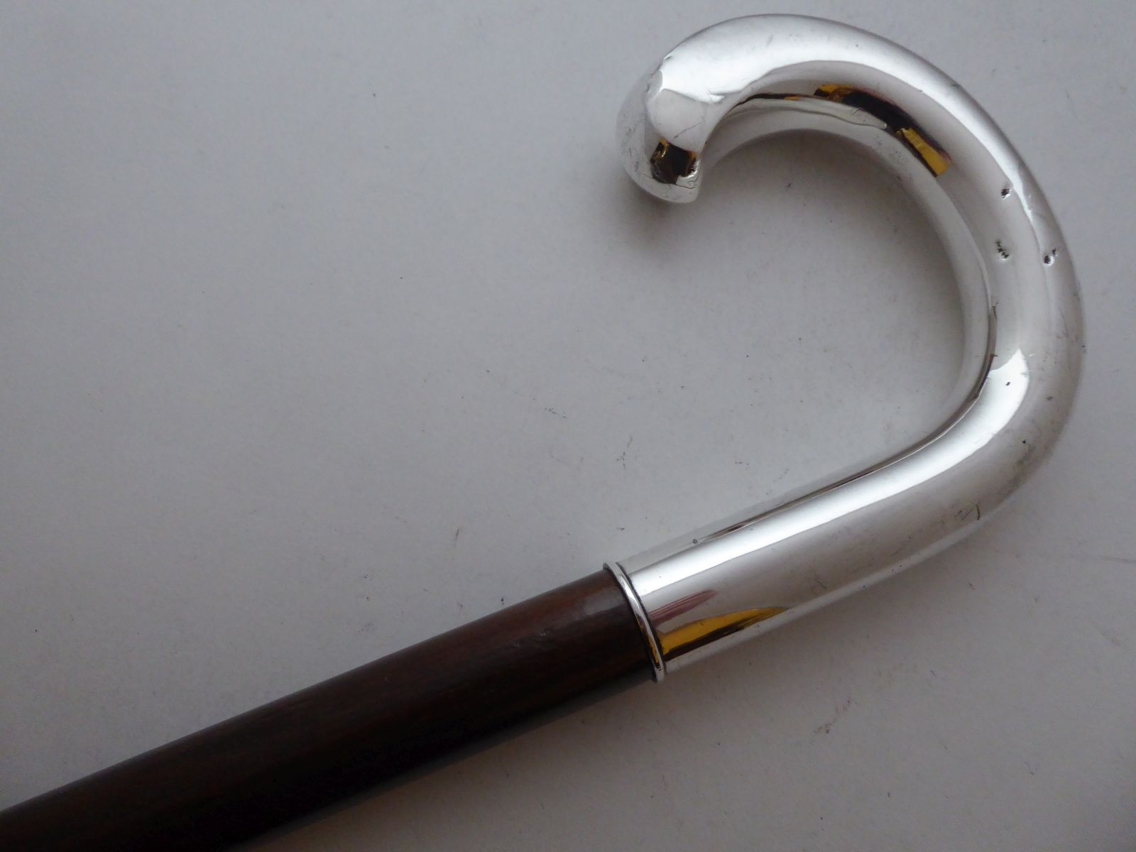 Massive German 1920s Walking Stick Cane Solid Silver Handle Beechwood Shaft