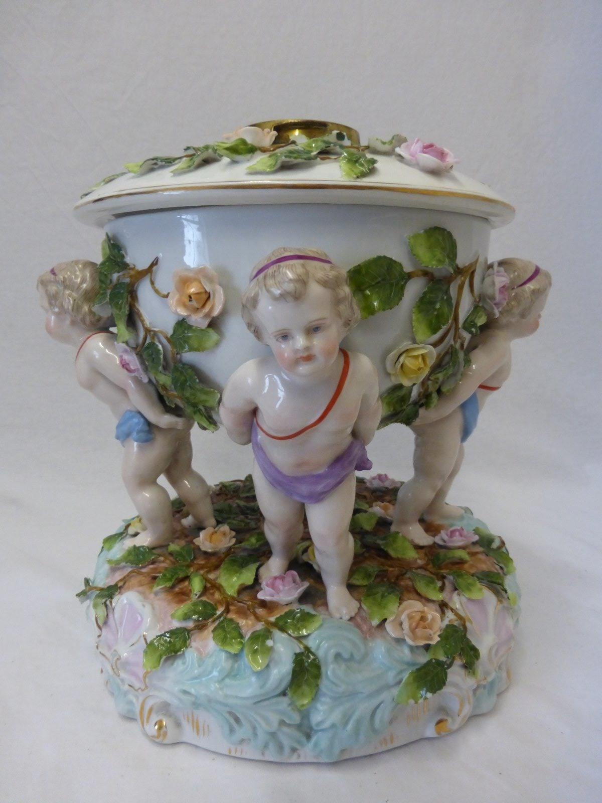 Massive Sitzendorf Porcelain Four Putti / Cherub Duplex Oil Lamp