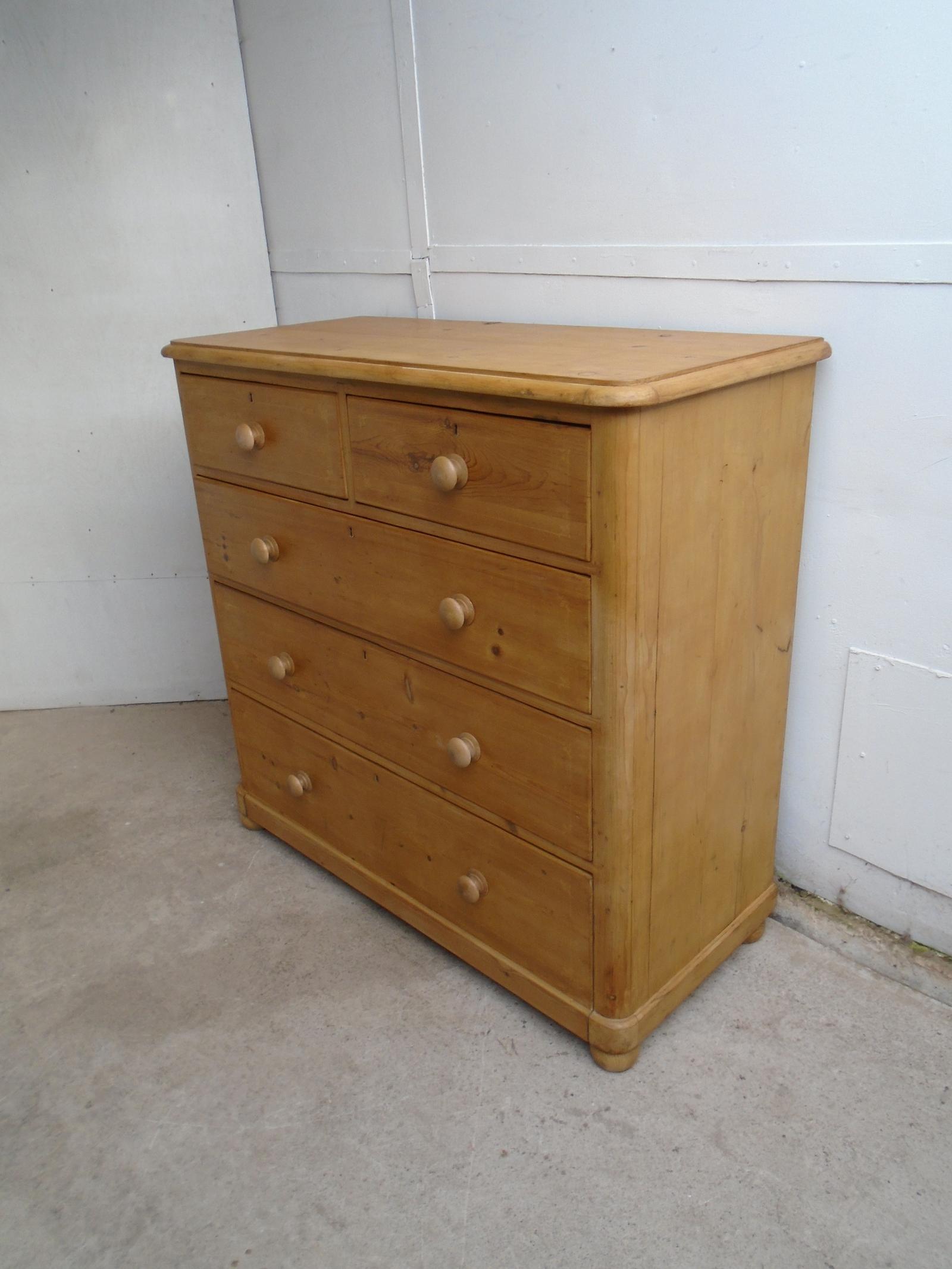 Massive Victorian Antique Pine Waxed 5 Drawer Chest of Drawers