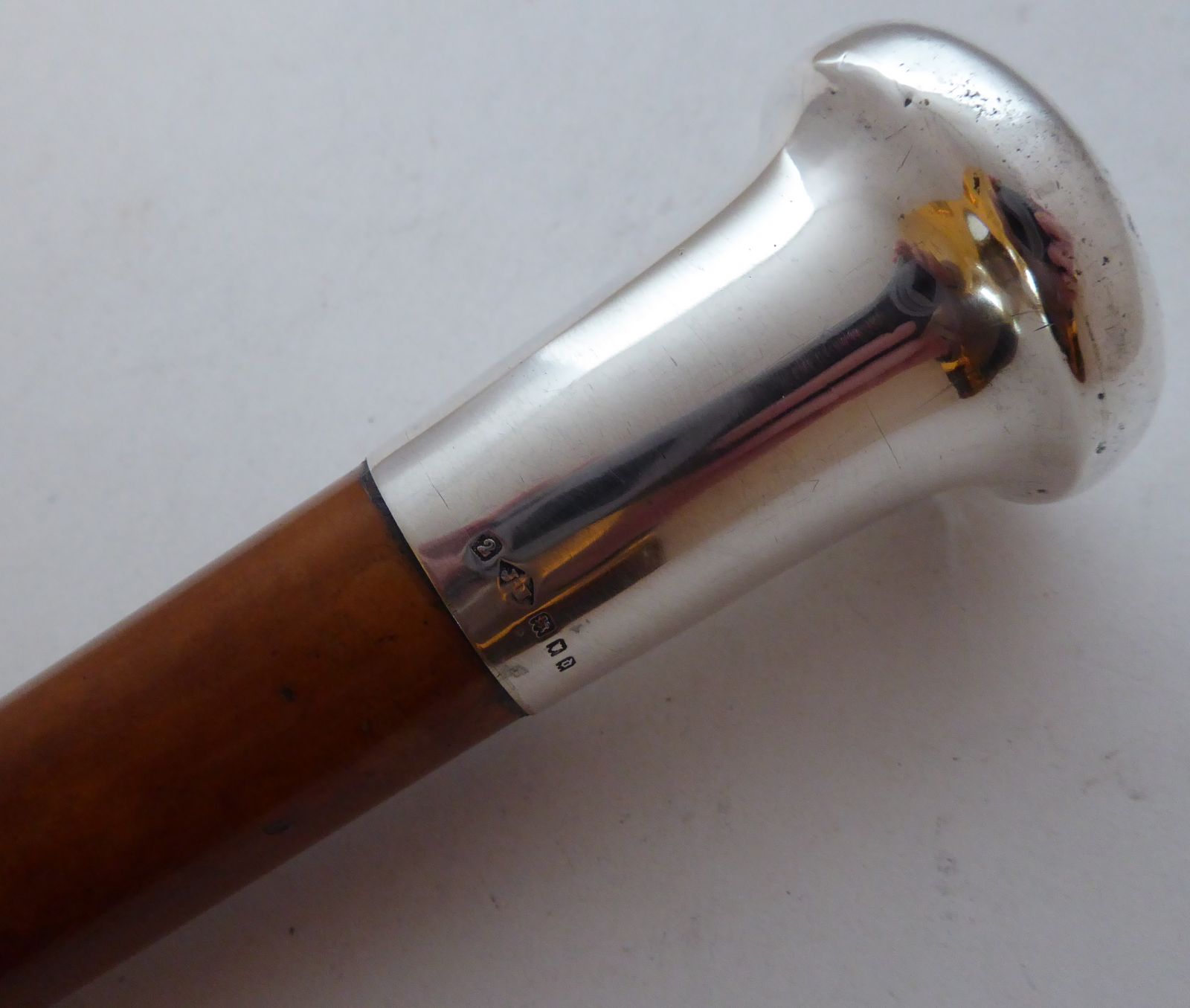 Massive Walking Stick Cane 1919 Hallmarked Solid Silver Pommel Malacca Shaft