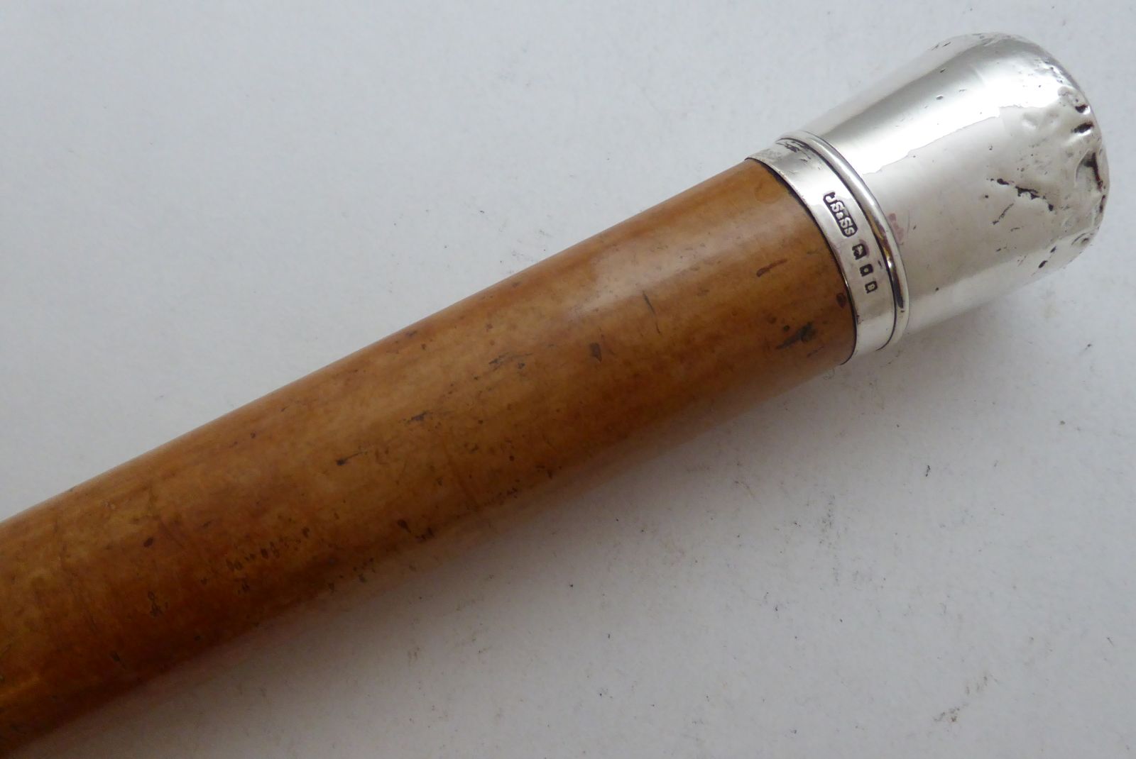 Massive Walking Stick Cane 1920 Silver Pommel Malacca Shaft James Smith & Sons