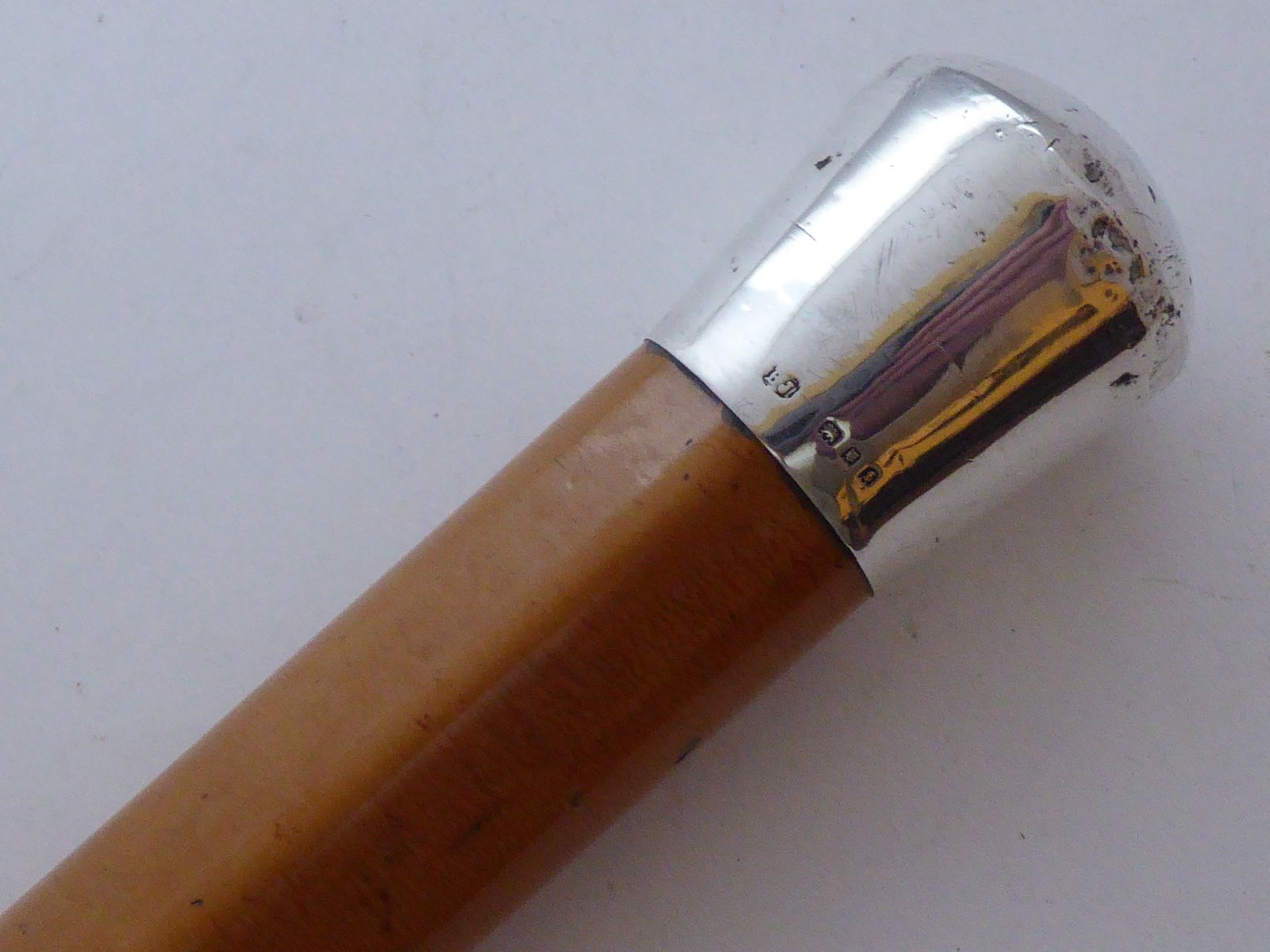 Massive Walking Stick Cane 1921 Hallmarked Solid Silver Pommel Malacca Shaft