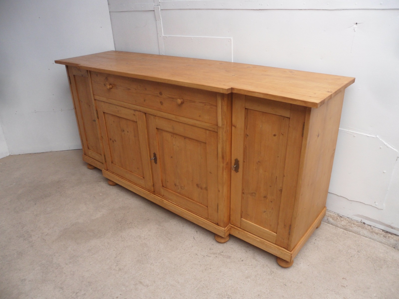 Massive Waxed Antique Pine 2 Metre Kitchen Dresser Base / TV Stand