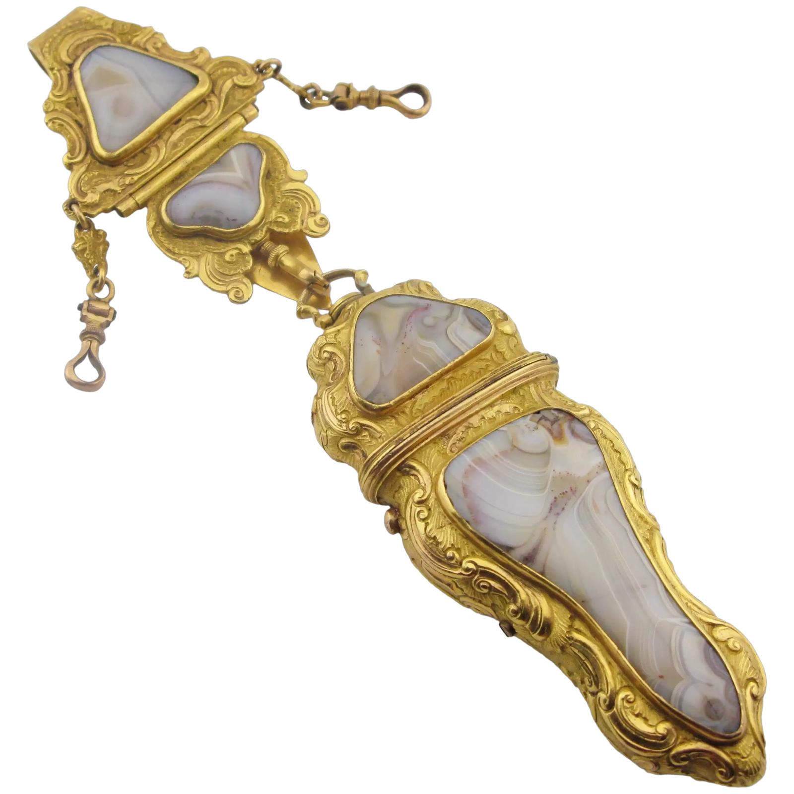 Matched Gilt Metal & Agate Chatelaine and Etui with Implements c.1769