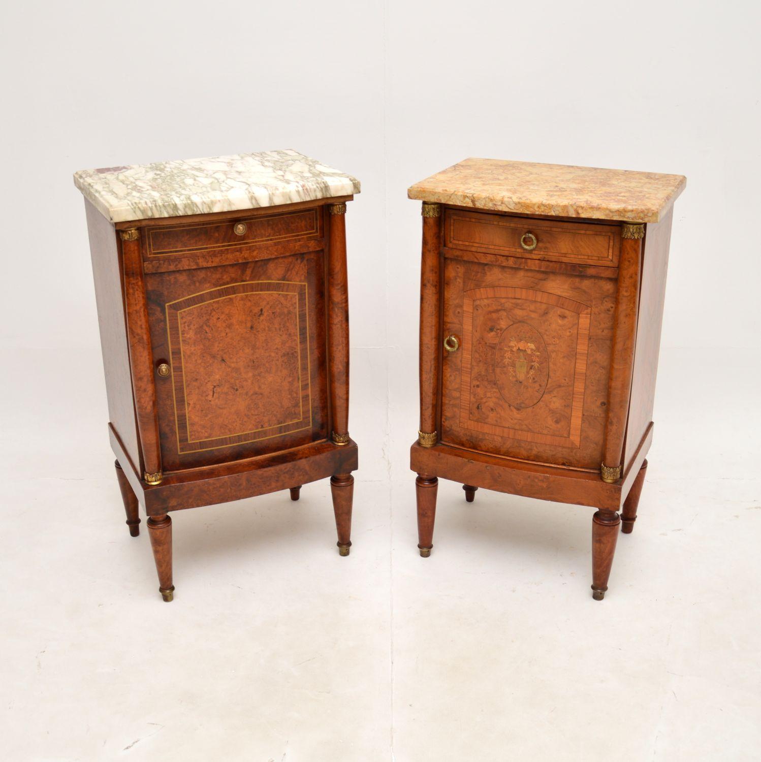 Matched Pair of Antique French Marble Top Bedside Cabinets (1 of 22)