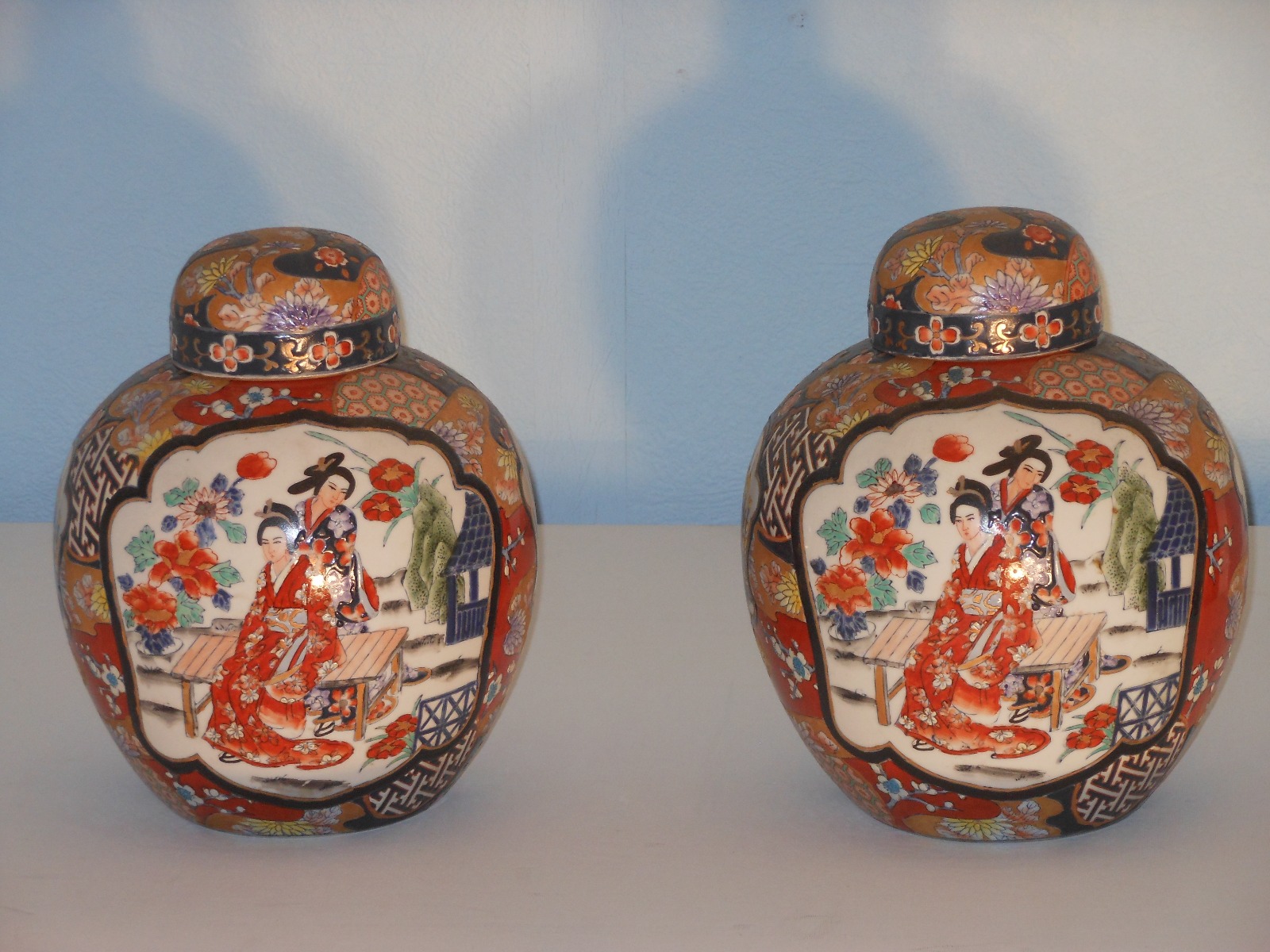 Matched Pair of Ceramic Ginger Jars