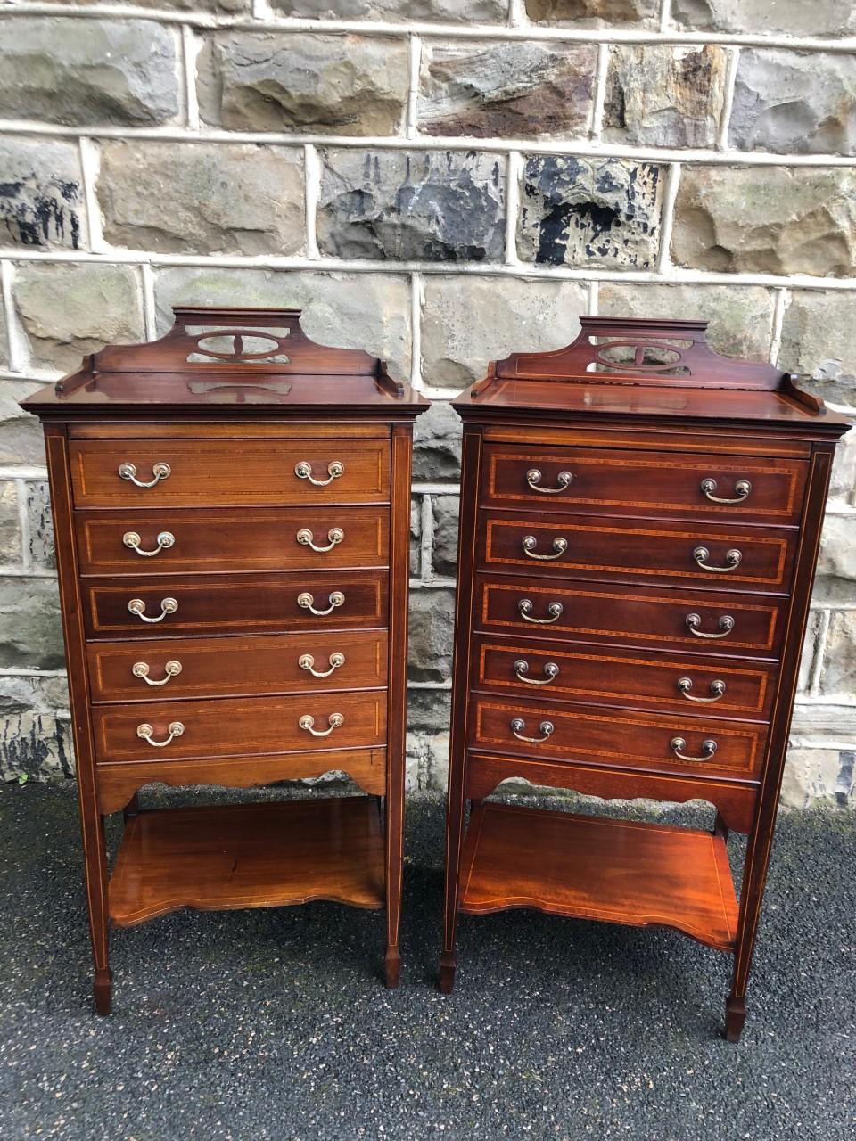 Matched Pair of Edwardian Inlaid Music Cabinets