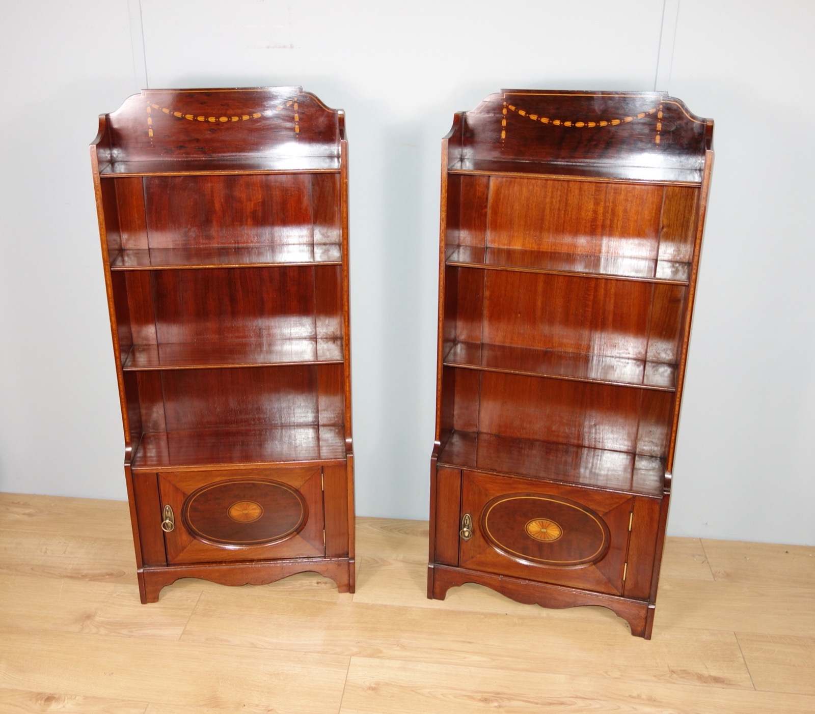 Matched Pair of Edwardian Mahogany Inlay Bookcases