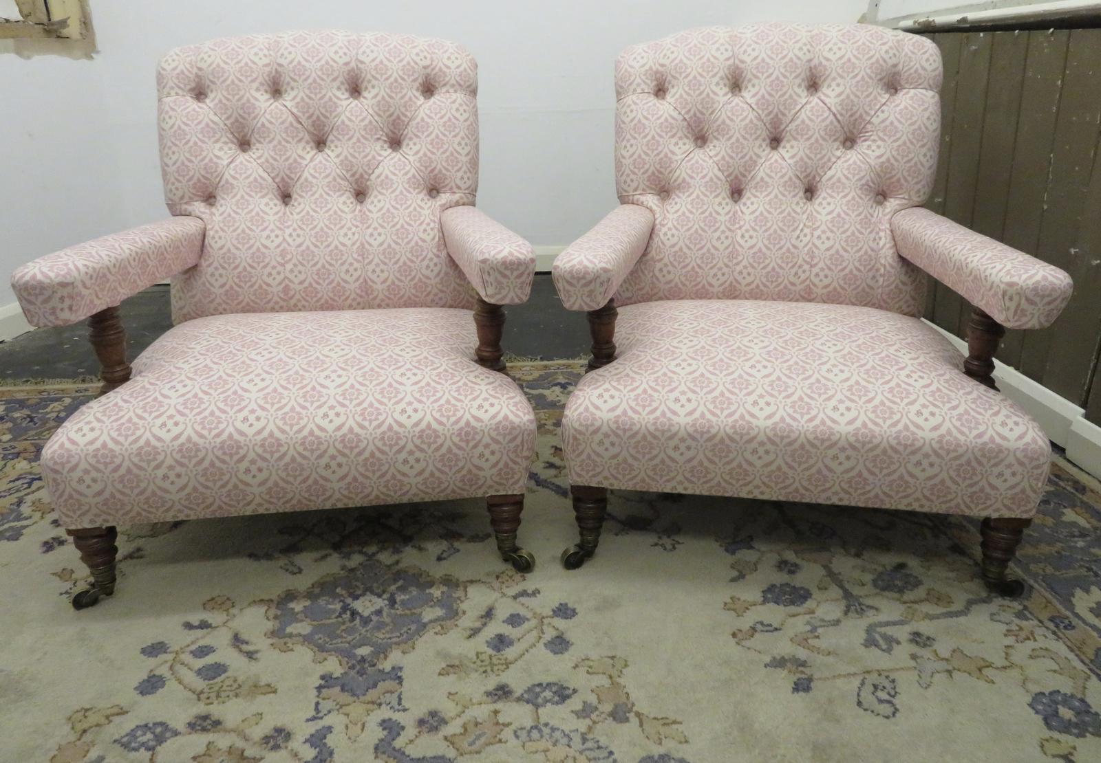 Matched Pair of Howard & Sons Walnut Open Armchairs