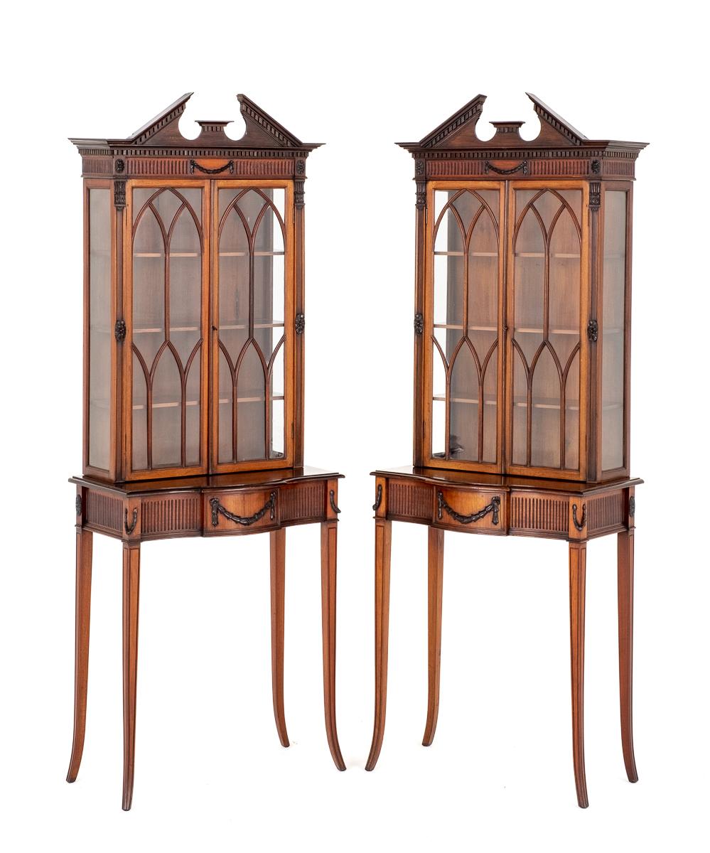 Matched Pair of Mahogany Adams Style Display Cabinets