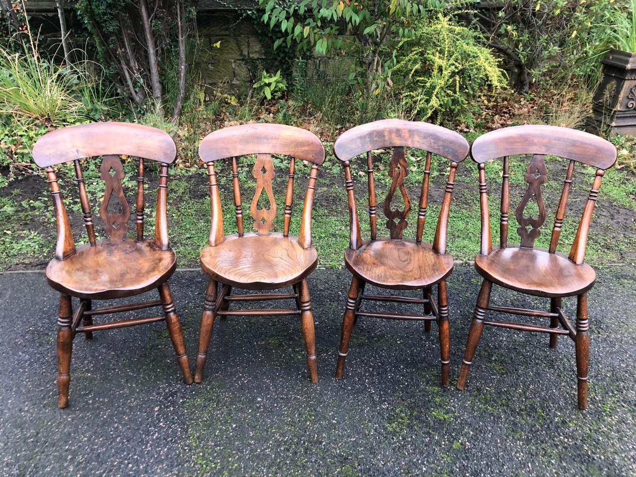 Matched Set of 4 Elm Farmhouse Kitchen Chairs