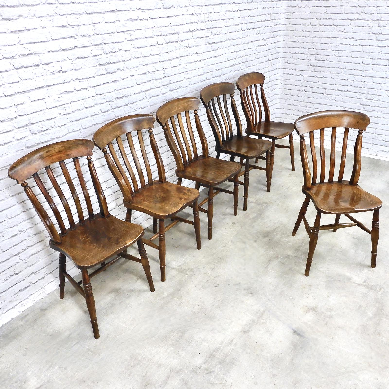 Matched Set of 6 Farmhouse Windsor Kitchen Chairs
