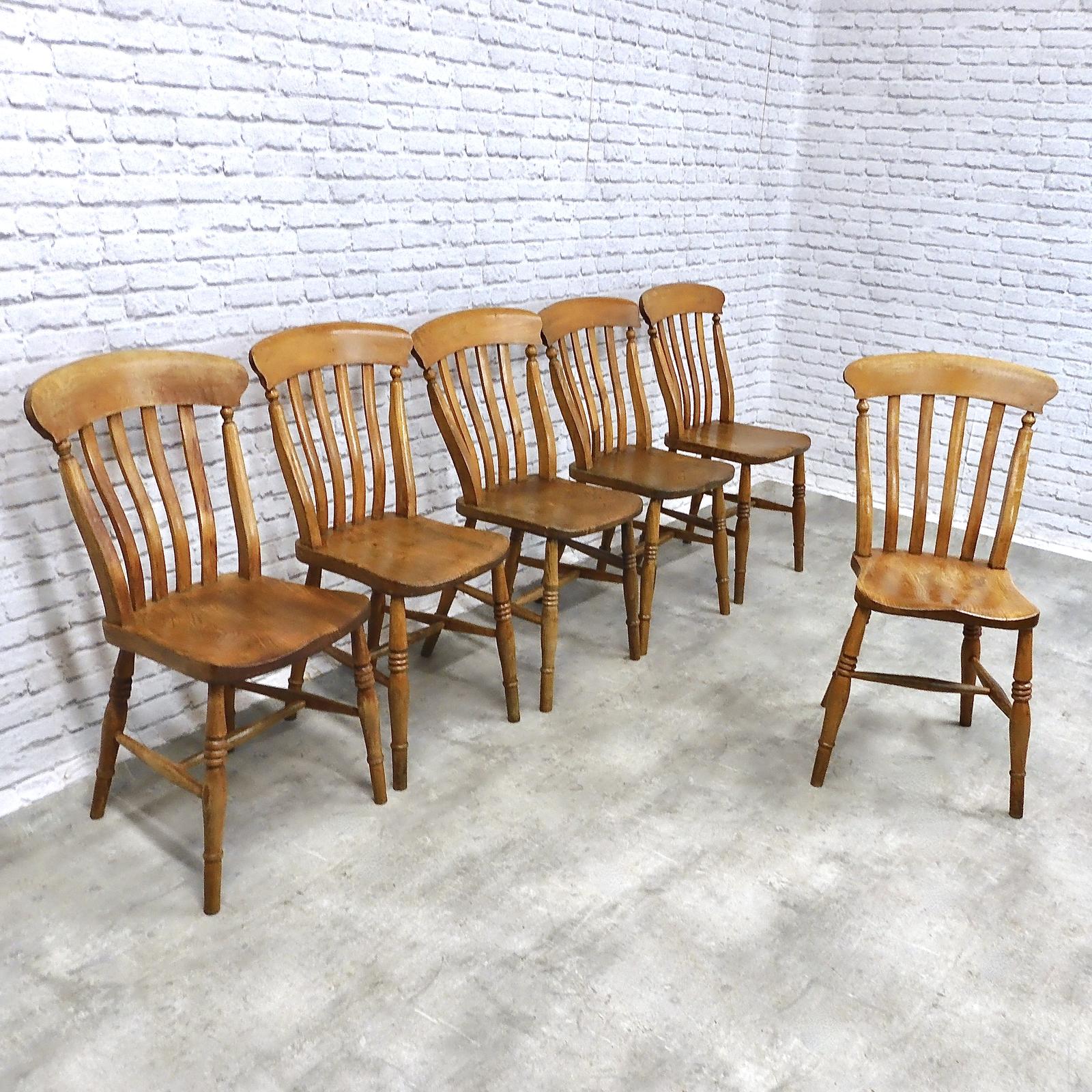 Matched Set of 6 Victorian Lathback Kitchen Chairs