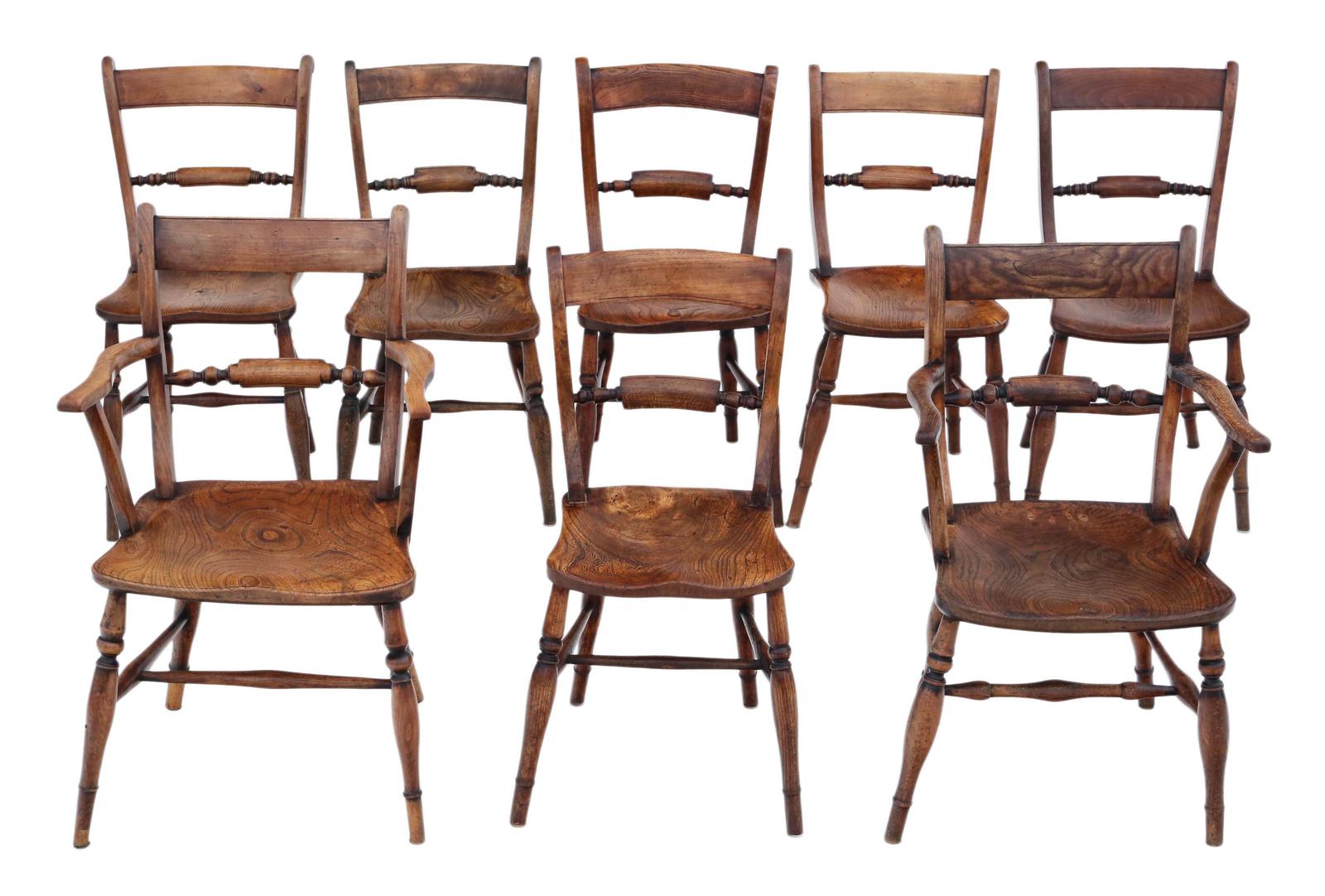 Matched Set of 8 Elm & Beech Kitchen Dining Chairs Mid-19th Century Oxford Knife-back