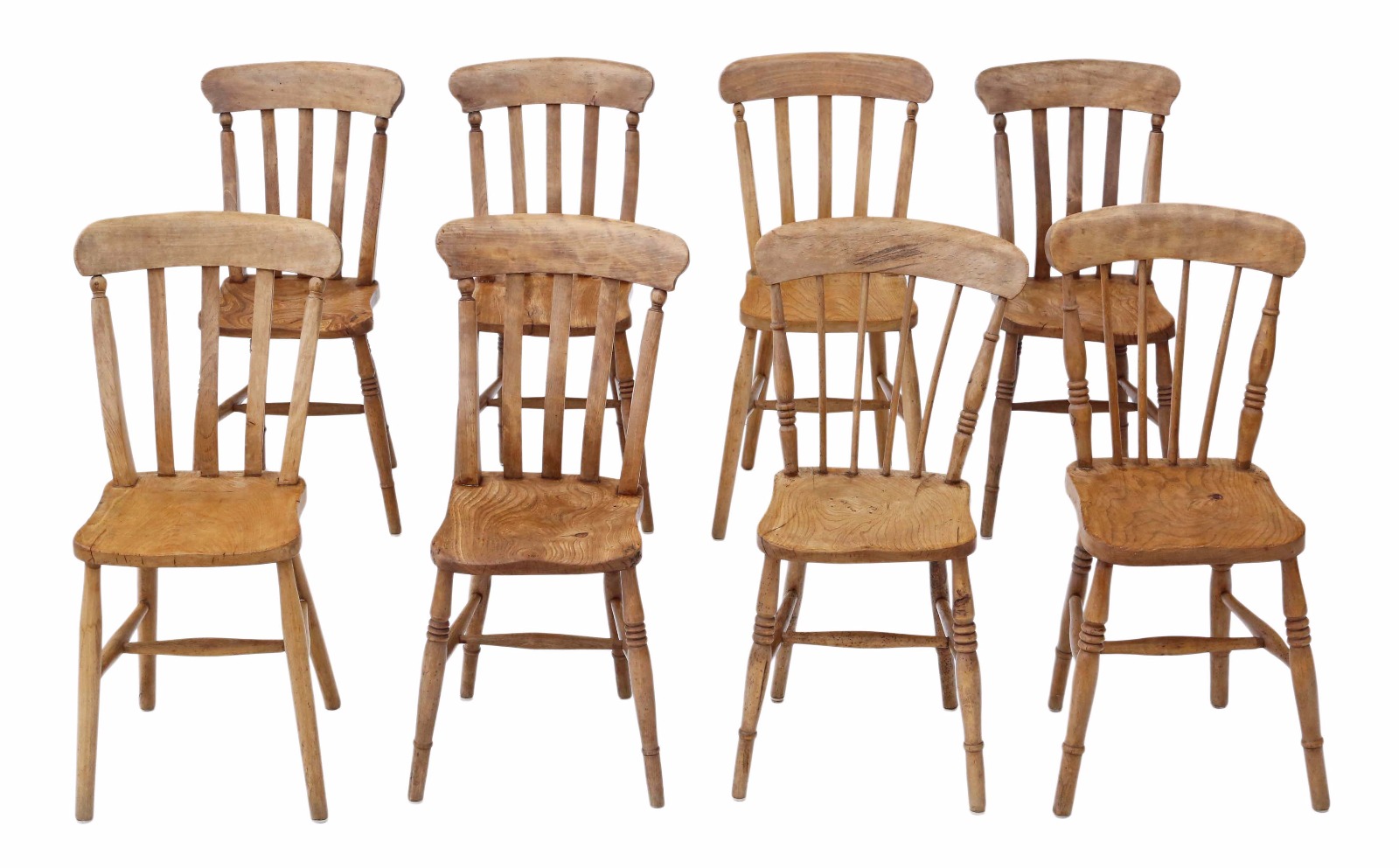 Matched Set of 8 Victorian Ash & Elm Kitchen Dining Chairs