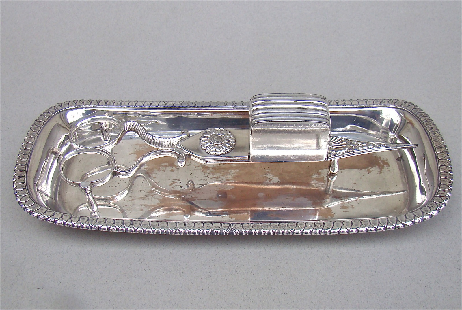 Matching Georgian Old Sheffield Plate Snuffers & Tray, c.1820