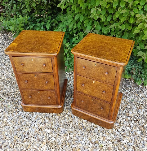 Matching Pair of Antique Burr Walnut Bedside Chests
