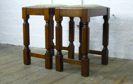 Matching Pair of Attractive 1930s Oak Upholstered Stools