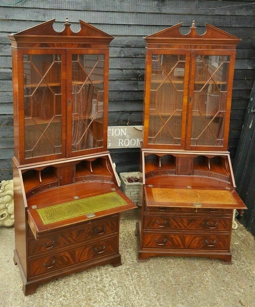 Matching Pair of Mahogany Bureau Bookcases
