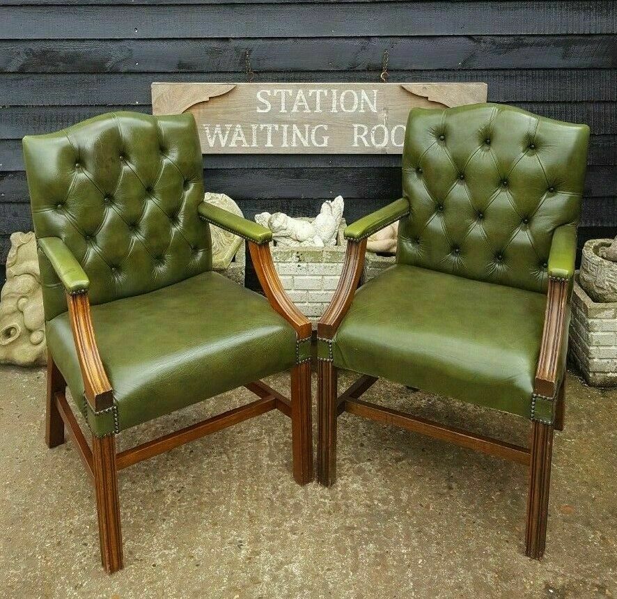 Matching Pair of Mahogany Gainsborough Buttoned Back Armchairs