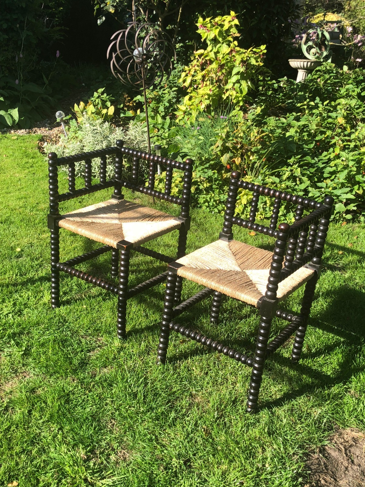 Matching Pair of Victorian Bobbin Turned Corner Chairs