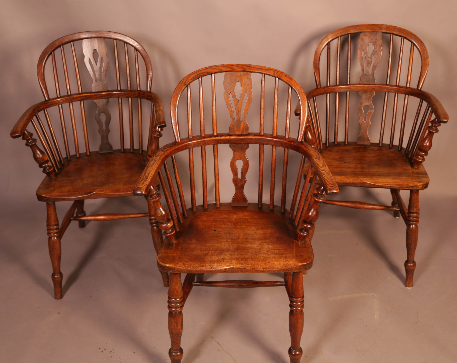 Matching Set of 3 Low Back Windsor Chairs c.1860 (1 of 9)