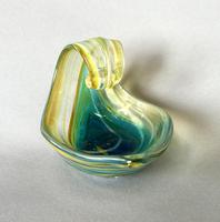Crafted on the beautiful Island of Malta in the Southern Mediterranean, this early example of Mdina Glass in an Aladdin's Lamp shaped dish. Reflecting the sea colours in blues and greens, this charming vintage piece is both decorative and practical. Mdina Glass was founded by Michael Harris and Eric Dobson in 1968. Named after the famed Silent City of Mdina, the glass quickly became popular and is still the best known of the Maltese Glass Factories. Harris left Malta in 1972 and went on to open the famous Isle of Wight Studio in the UK, returning to Malta in 1989 to open Gozo Glass on Malta's sister Island.