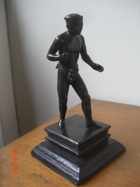Meiji Japanese Bronze Figurine of a Sumo Wrestler On a Wooden Plinth Base.