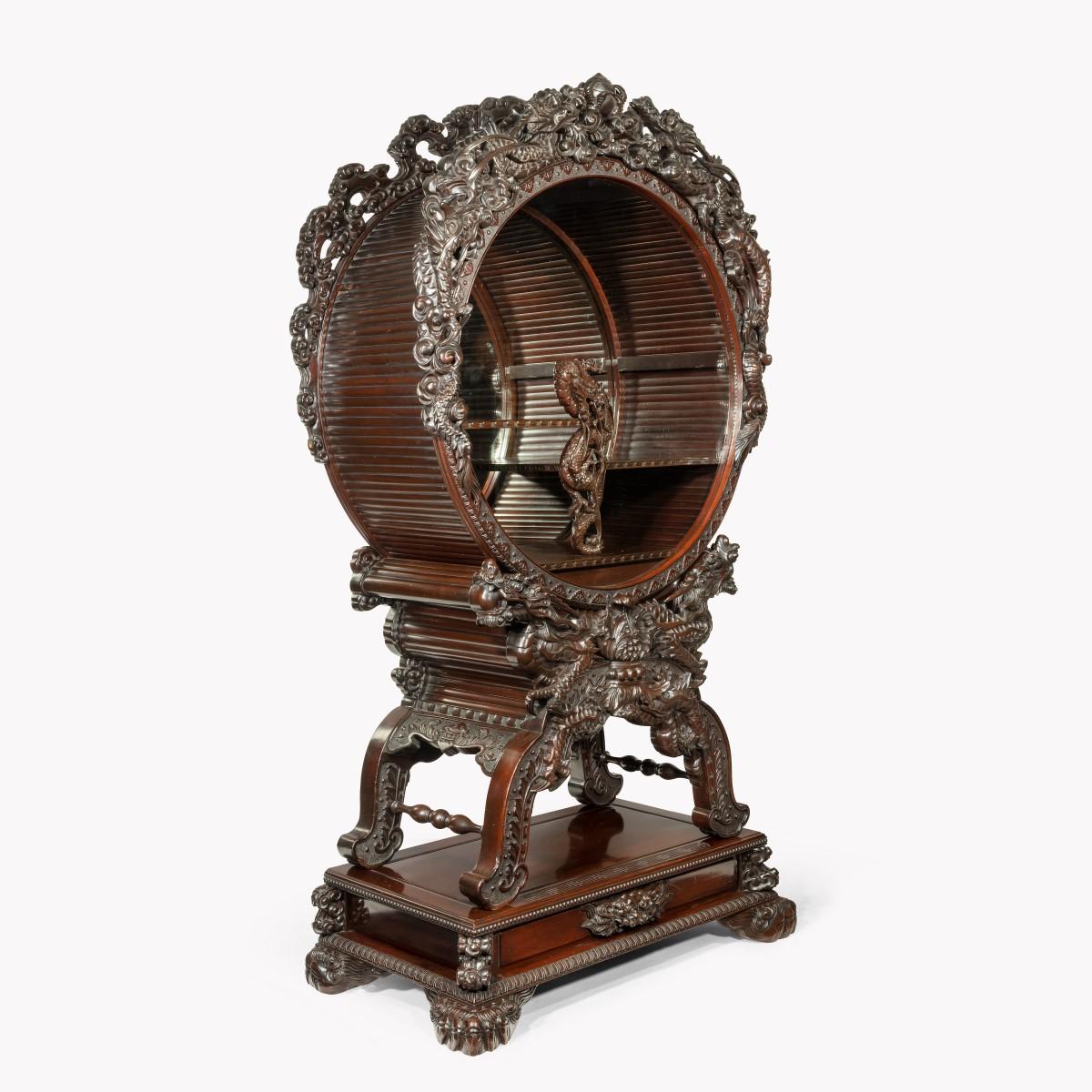 Meiji Period Carved Hardwood Circular Display Cabinet