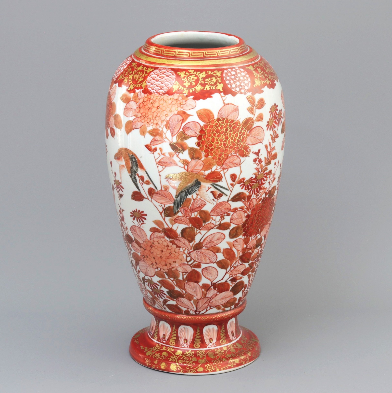 Meiji Period Japanese Akae Kutani Large Signed Baluster Vase