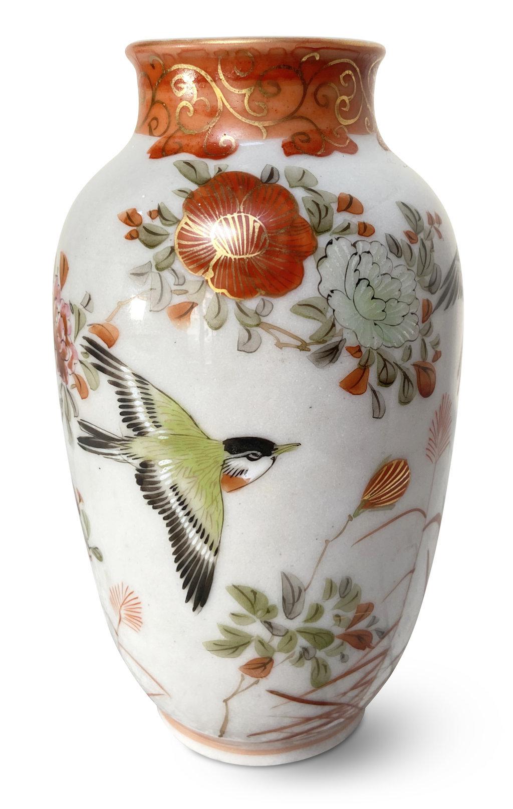 Meiji Period Kutani Vase Decorated with Birds in Flight