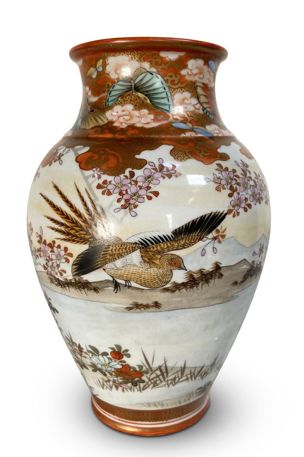 Meiji Period Kutani Vase Decorated with Geese