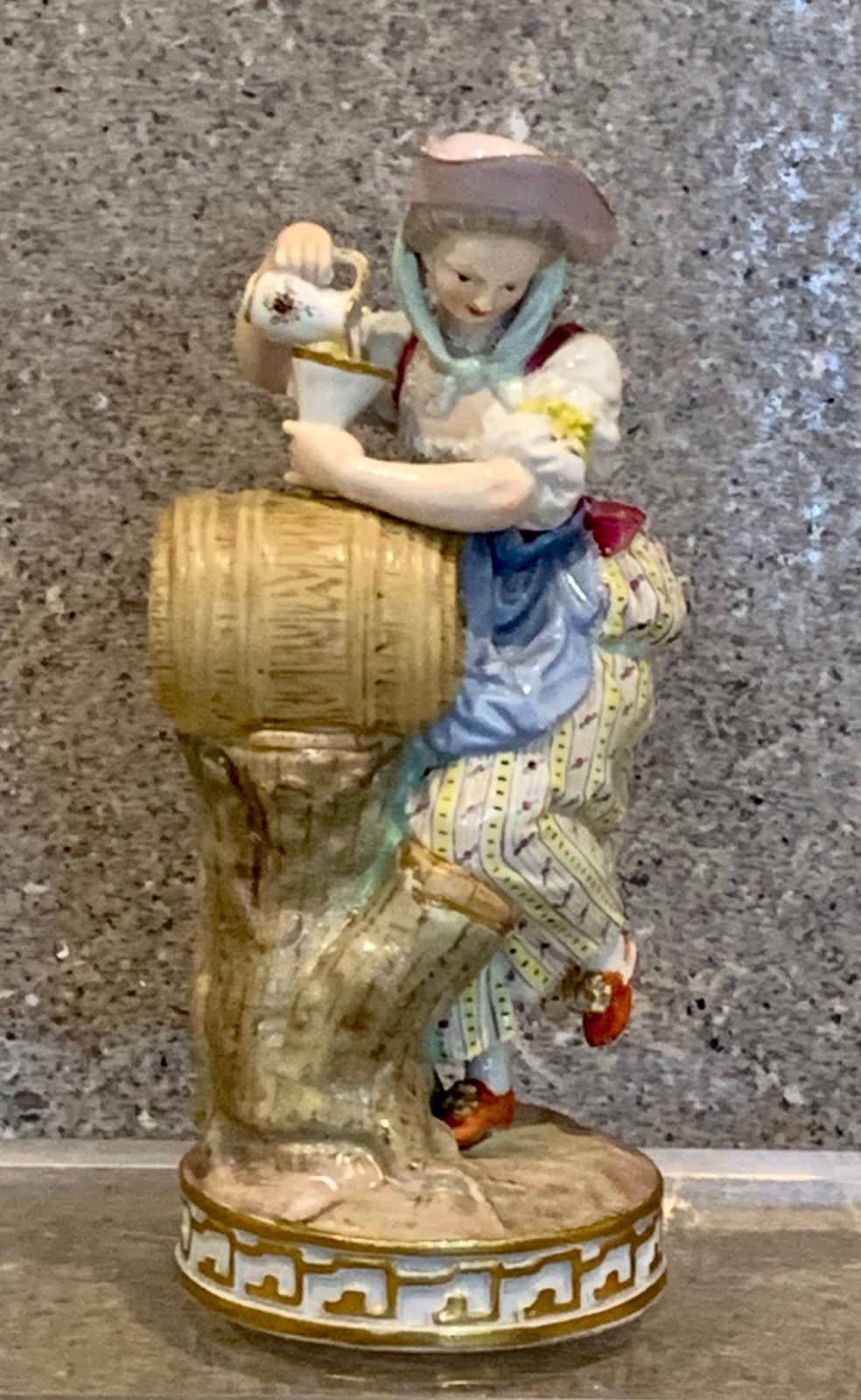 Meissen Grape Harvester Girl with Funnel & Barrel. Antique