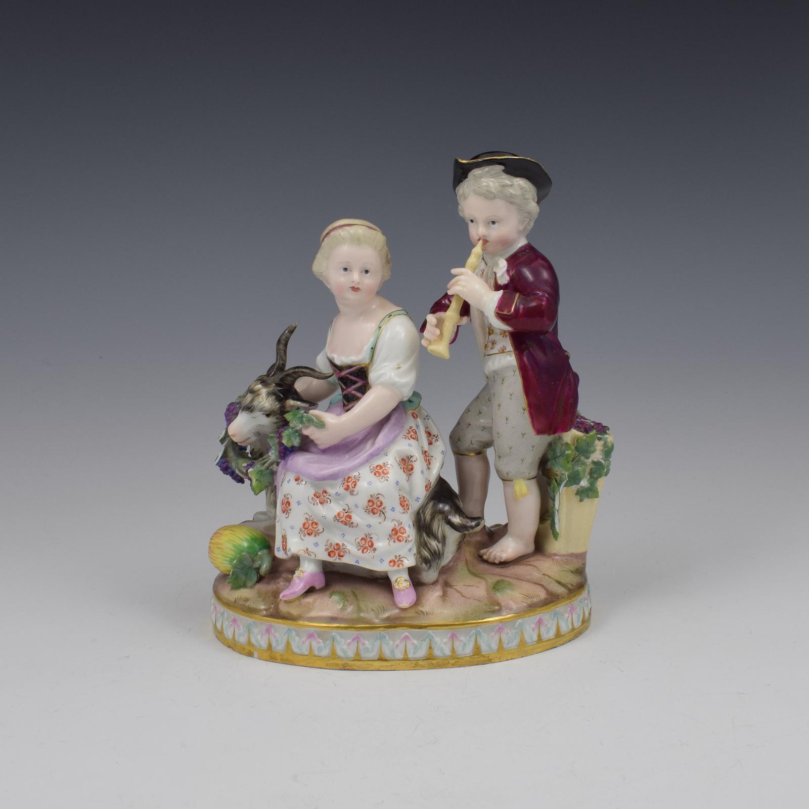 Meissen Porcelain Figure Group Grape Pickers, Children with Goat as Autumn