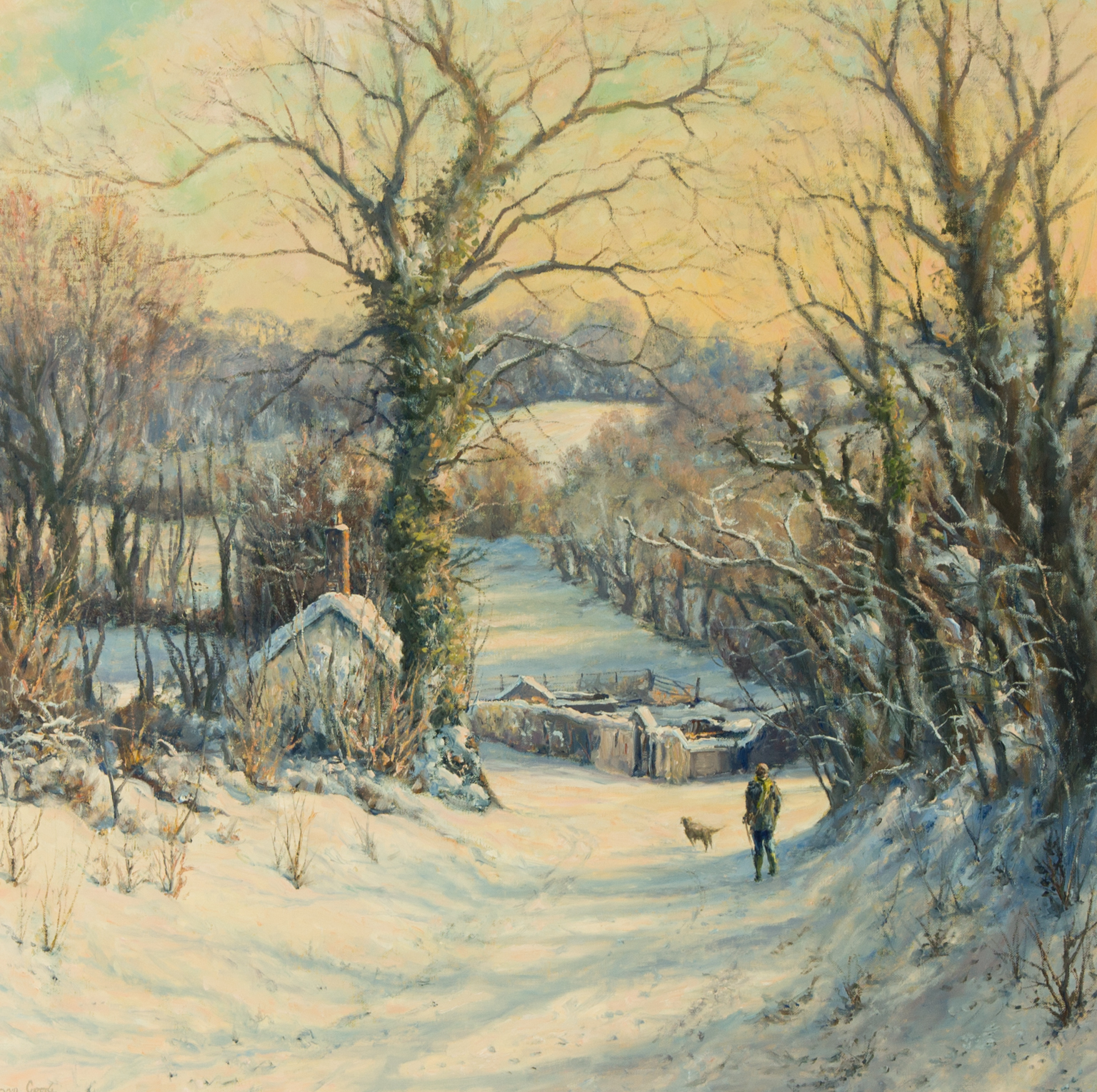 Mervyn Goode - Large Modern British Oil, Winter Path in Hampshire