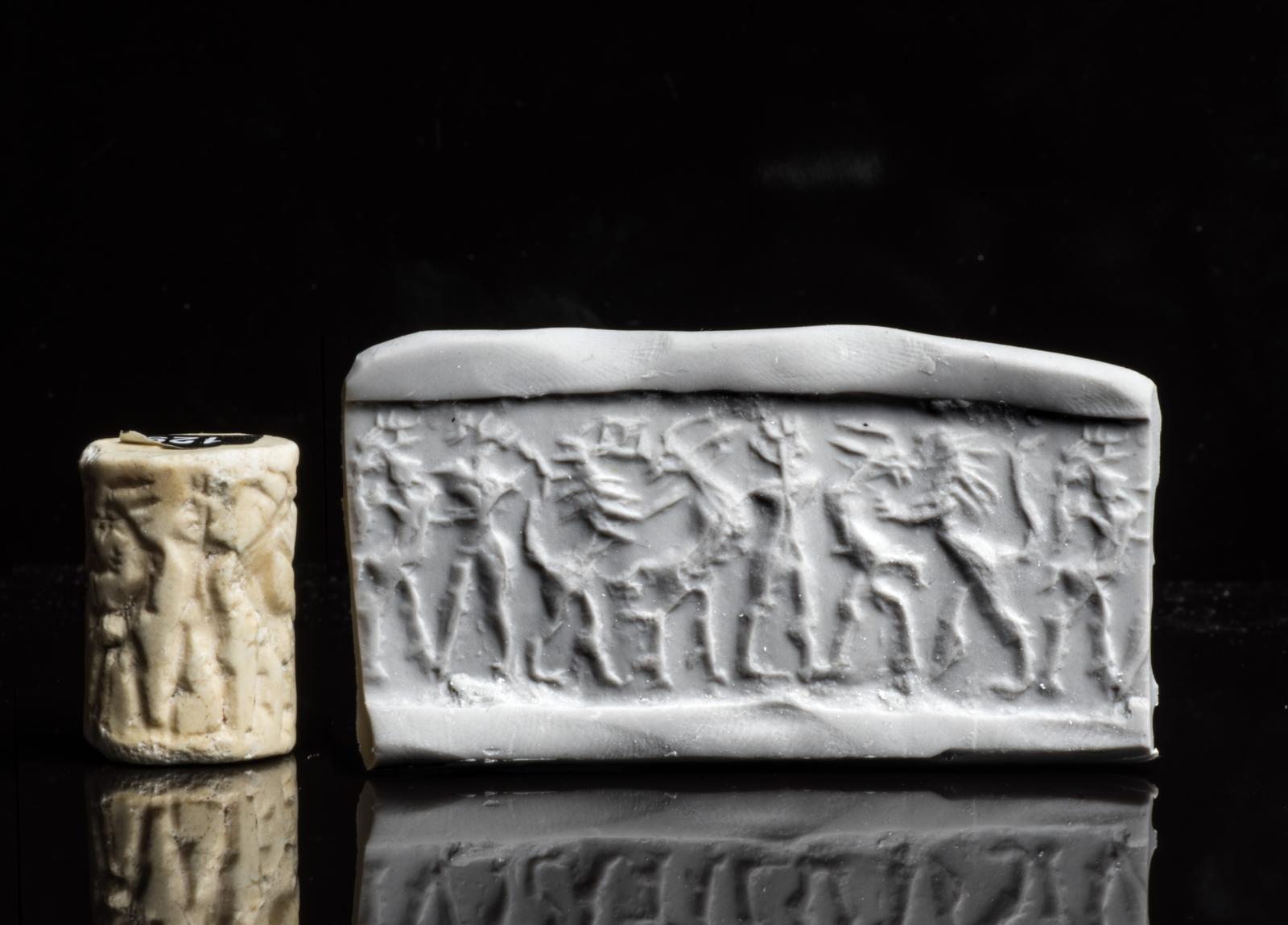 Mesopotamian Akkadian Cylinder Seal with Combat Scene