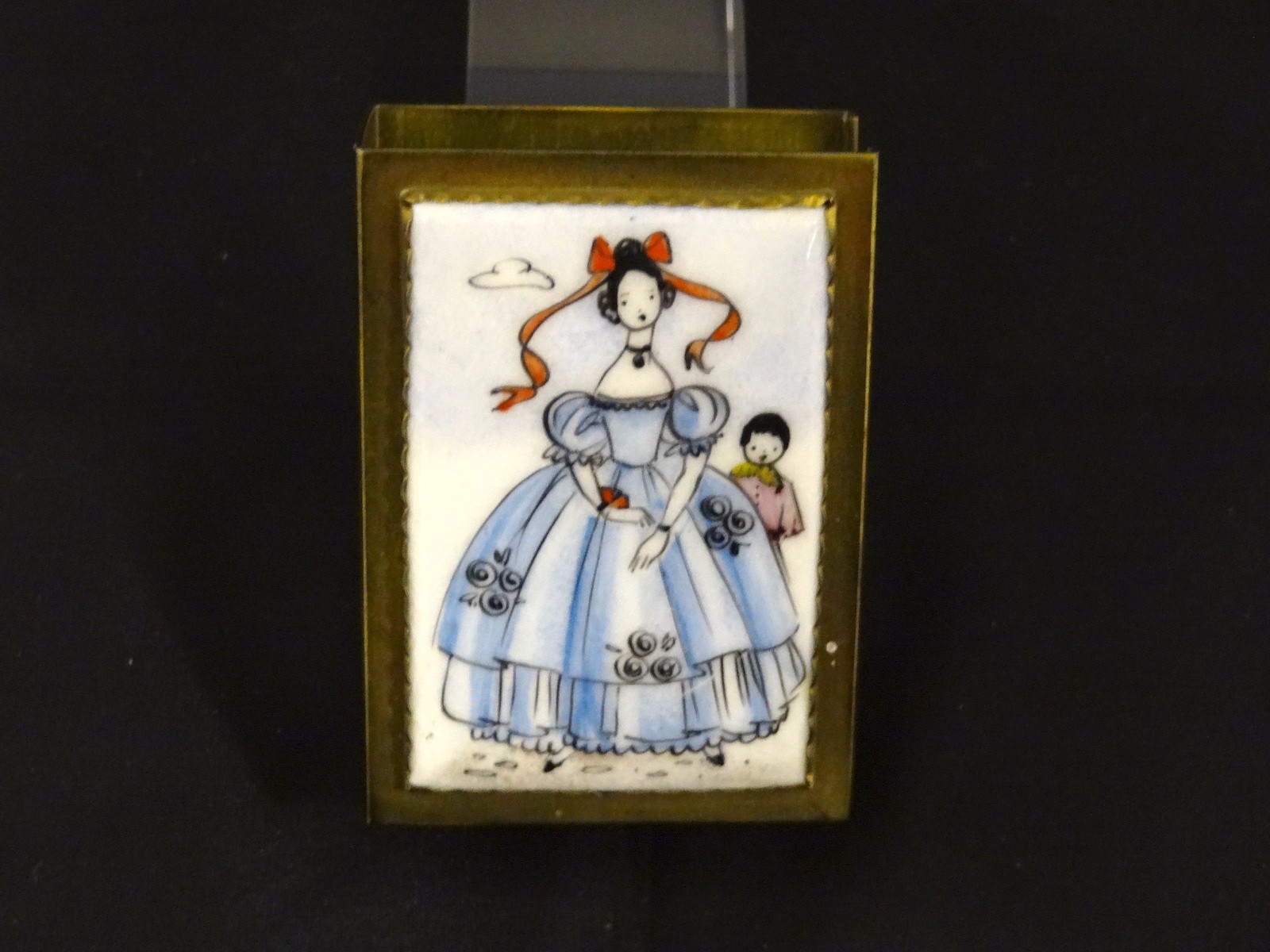 Metal Match Box Slider, Ceramic Plaque, Early 20th Century