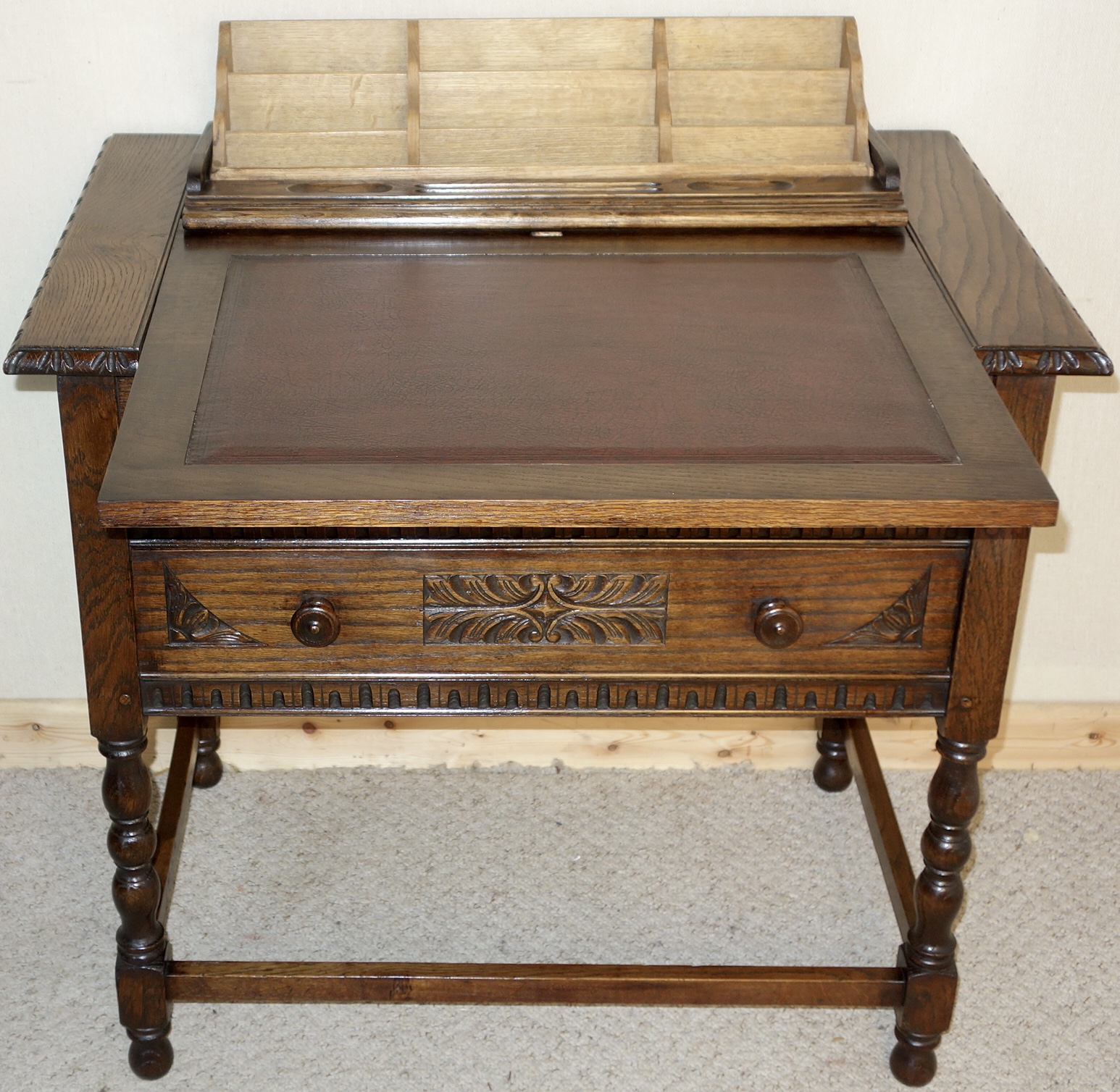 Metamorphic Oak Leather Writing Desk / Side Table c.1930 (1 of 1)