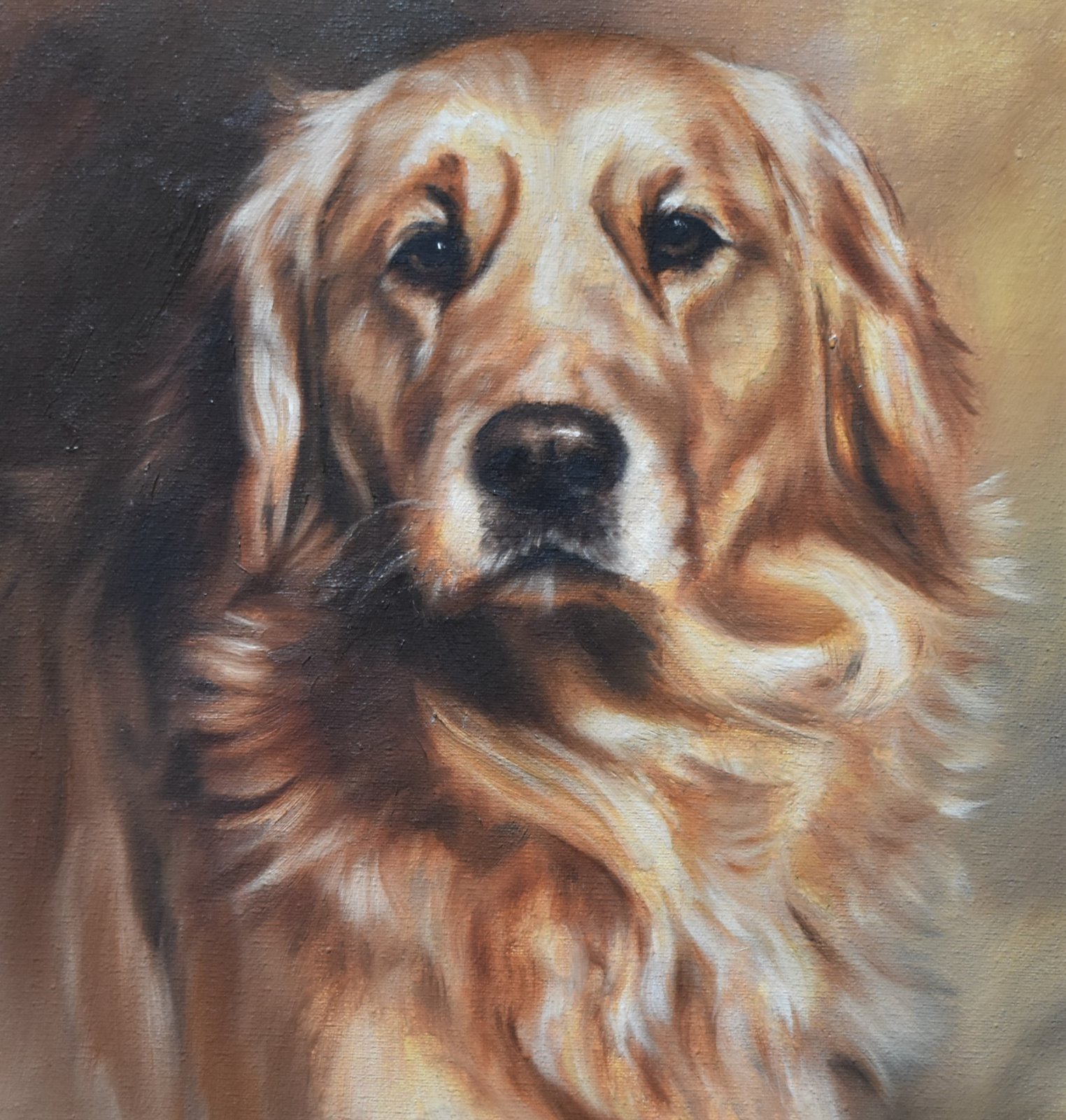 Mick Cawston Original Oil Painting - Portrait of a Golden Retriever Dog