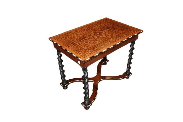 Mid-1800s French Dutch Style Small Table with Inlaid Torchon